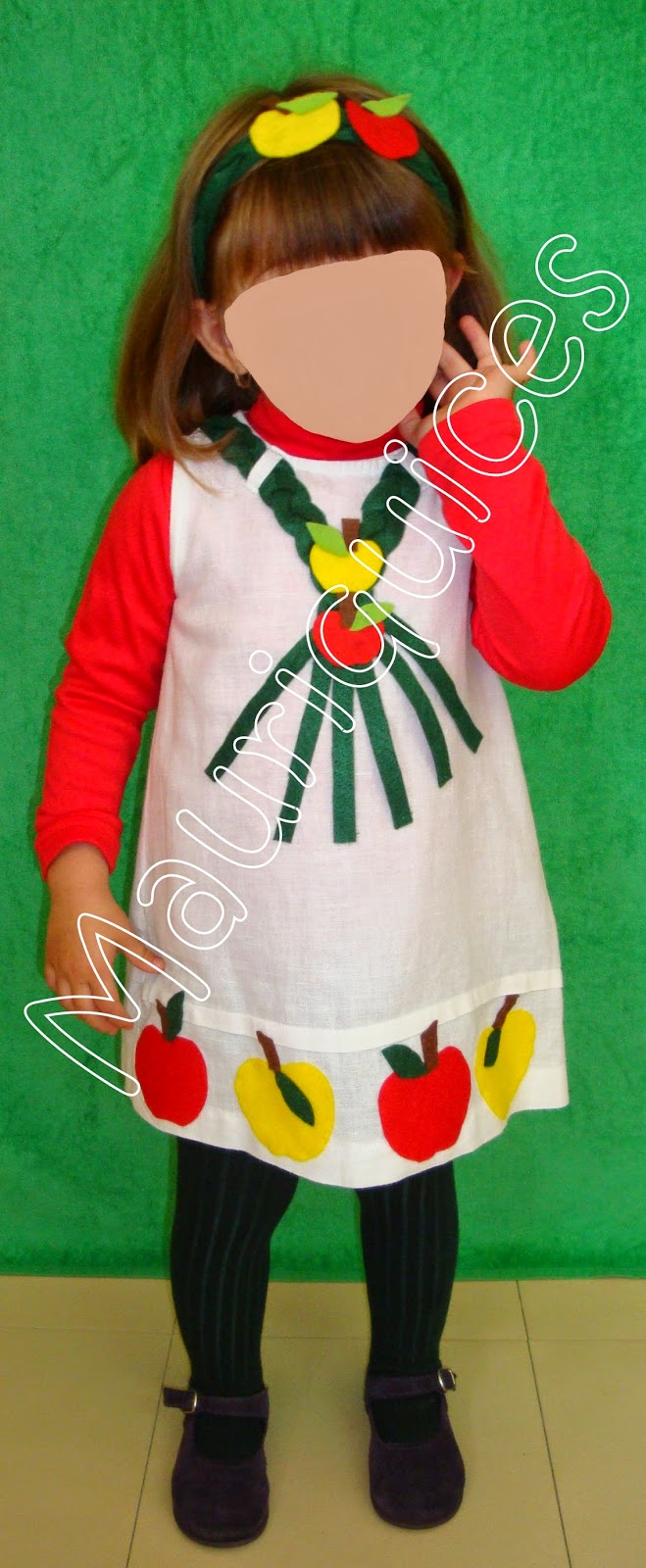 Eis o quinto modelo criado e elaborado por mim, para a minha turma participar num desfile de moda cuja temática era a maçã.